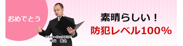 あなたの防犯に対する意識は大したものです。もはやセキュリティアドバイザーも脱帽の知識を披露してくださいました! その熱意に、泥棒も恐れをなして逃げていくことでしょう。 この防犯知識を持って、自宅や地域などの防犯対策にこれからも尽力していってください! しかし、泥棒も新たな侵入方法を開発して挑んできます。 当社には日々そういった最新情報も入ってきますので、ぜひ定期的に当ホームページをご覧いただき、ご不明な点などは何なりとお問い合わせください。