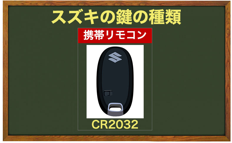 スズキスマートキーの正式名称は携帯リモコンといい、電池の種類はCR2032です。