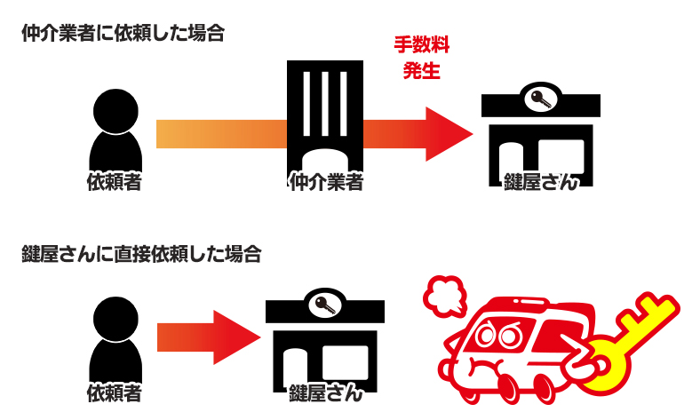 このような理由から、仲介業者に頼むよりも、鍵屋さんに直接依頼した方がお得かもしれません。