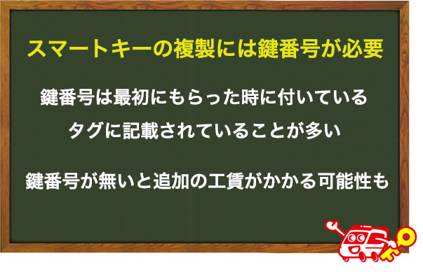 ディーラーも何の情報もなしにスマートキーを作成するのは難しいです。そのため、「鍵番号」というものでスマートキーの情報を得て作成します。