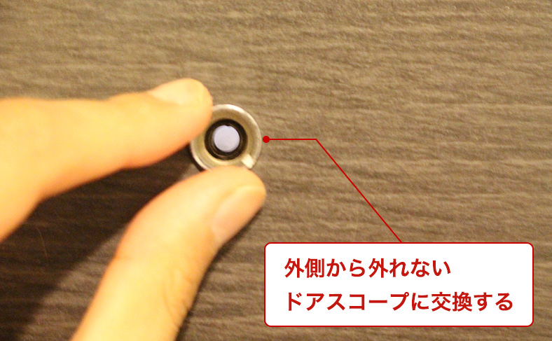方法としては、外側から外すことのできないドアスコープに交換することです。インターネトなどで購入ができます。